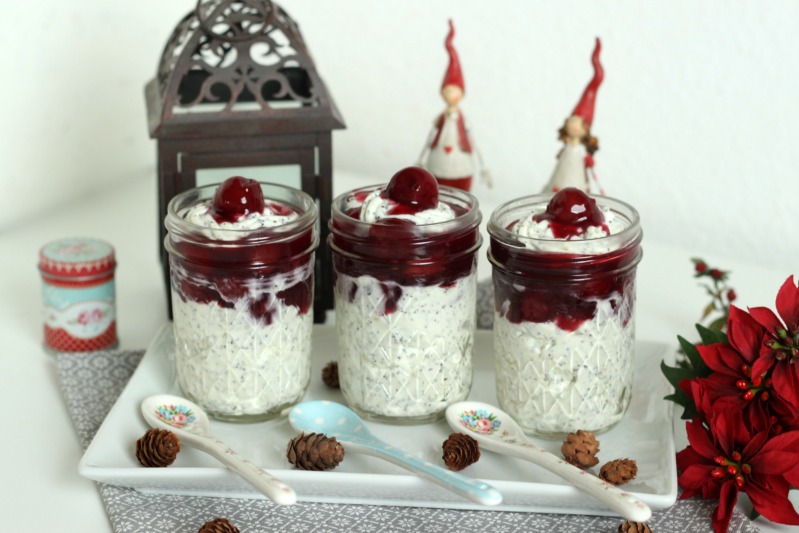 Mohncreme, das liest sich lecker, und mit den Kirschen drauf sieht es auch köstlich aus. Ich habe am Sonnabend Orangen-Mohn-Plätzchen gebacken und noch eine Menge Mohn übrig. Vielleicht genau richtig für die Creme…
