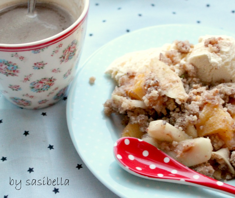 So ein Apfel-Crumble habe ich auch schon mal gegessen. Köstlich!