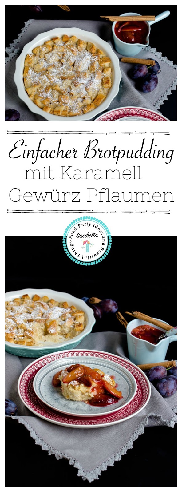 Herbstzeit ist Pflaumenzeit und Soulfoodzeit und Zeit für wärmende Gewürze. Wenn es draußen dunkel,kühl und regnerisch ist, bringt so ein leckerer süßer Brotpudding wahre Glücksgefühle zum Vorschein.