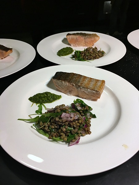 Probieren durften wir dann Lachshäppchen vom Keta- und Sockeyelachs, Lachscarpaccio, Lachsfrikadellen und gegrillten Lachs mit Kräuterlinsen und Salsa Verde.