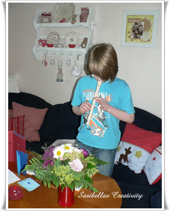 die Pfingsrosen sind echt toll und die duften so schön. Sogar ein Flötenstück hast Du bekommen. Die Bastelsachen sind sehr schön 😉