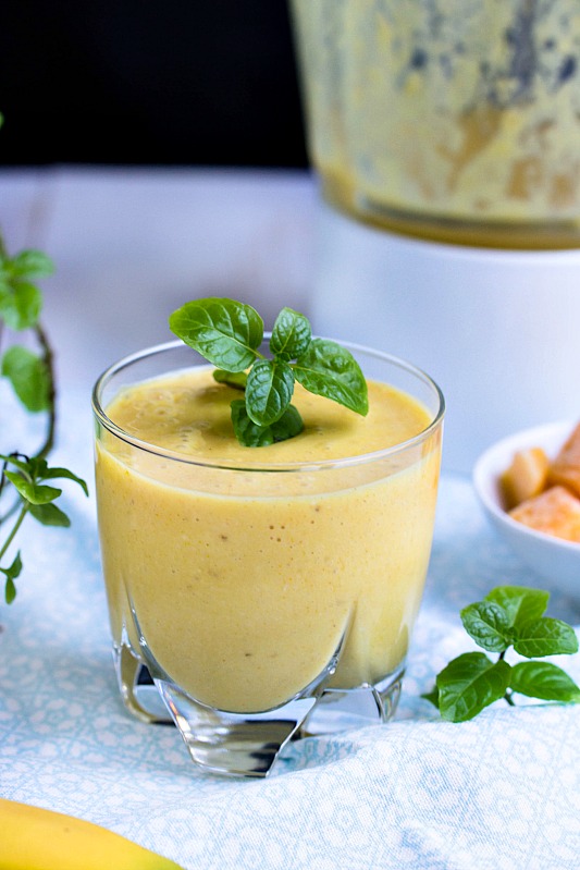 Alle Zutaten in einen Mixer geben und fein pürieren. Mit etwas Minze verziert servieren.
