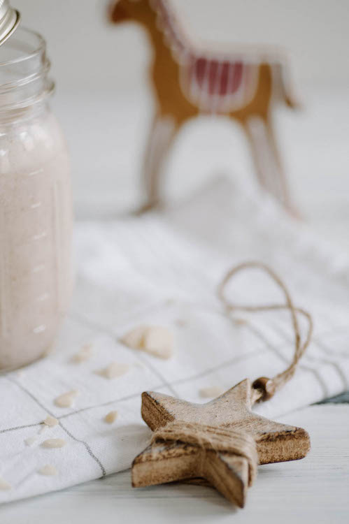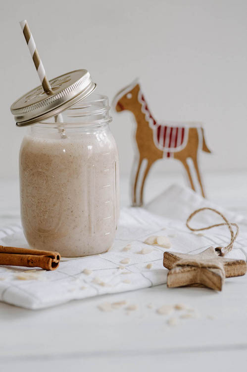 Tipp: Ihr könnt natürlich einen beliebigen Mandeldrink nutzen, aber ich nehme gerade für den weihnachtlichen Shake gerne die Mandelmilch “Ungeröstete Mandel ungesüßt” von Alpro, denn die schmeckt durch die ungerösteten und natürlichen Mandeln ein bisschen nach Marzipan und verfeinert den Geschmack.